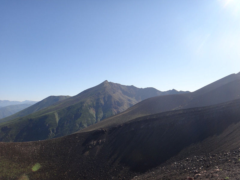 美瑛岳への縦走路から見た十勝岳。
