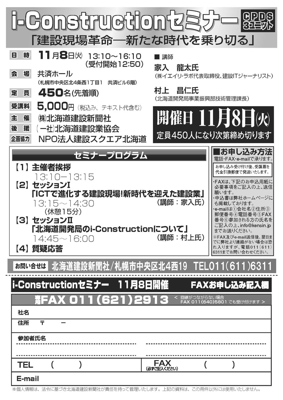 (³ô)Ë̳¤Æ»·úÀß¿·Ê¹¤¬¼çºÅ¤¹¤ë¡Öi-Construction¥»¥ß¥Ê¡¼¡×¤¬³«ºÅ¤µ¤ì¤Þ¤¹¡£