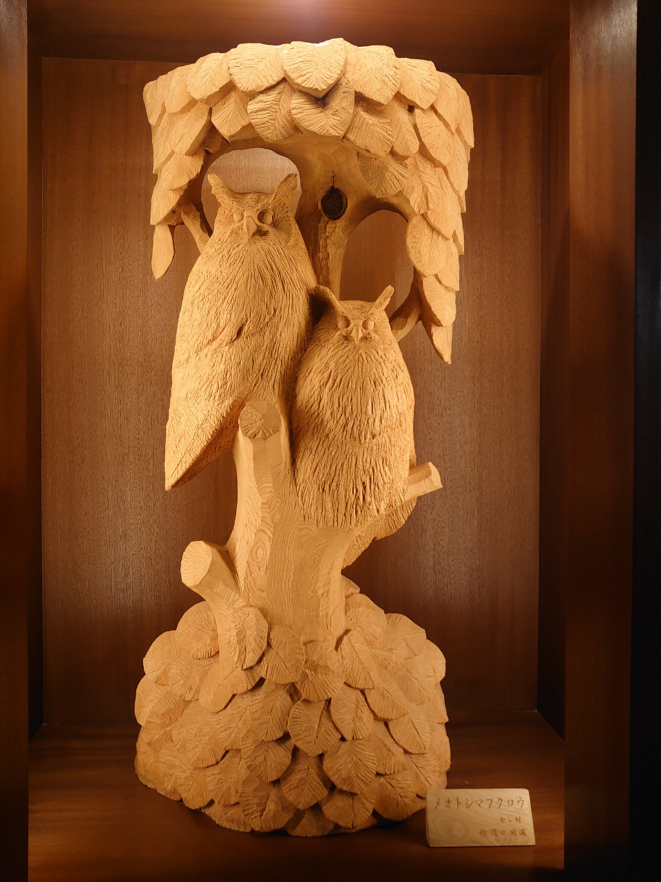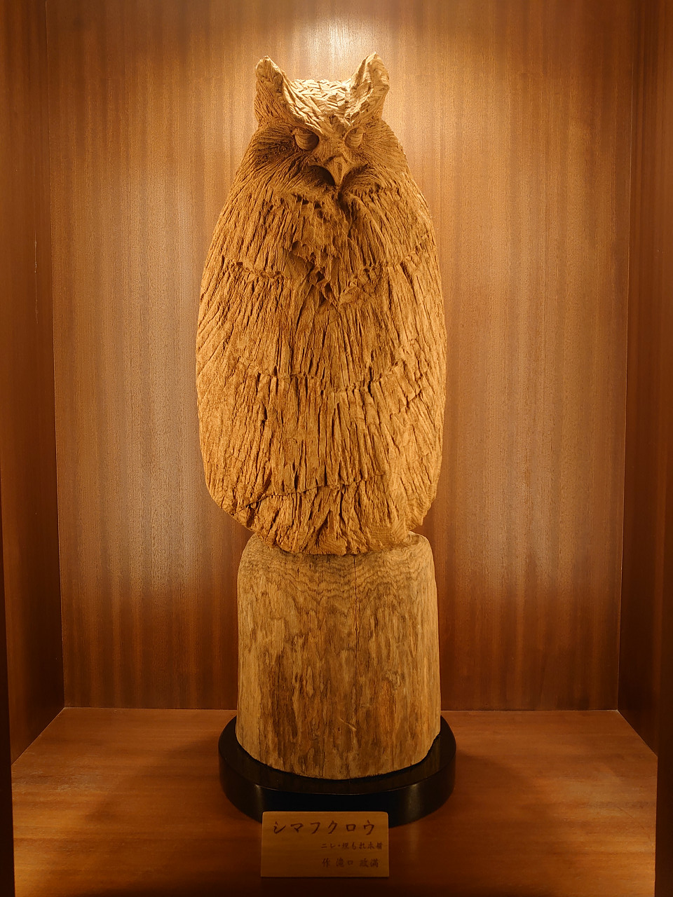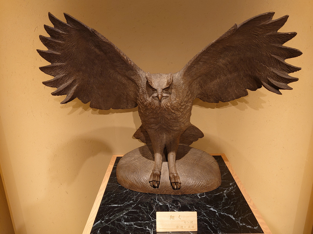鶴賀のロビーには「瀧口 政満」「藤戸 竹喜」の彫刻が多数展示されていてすばらしいものでした。