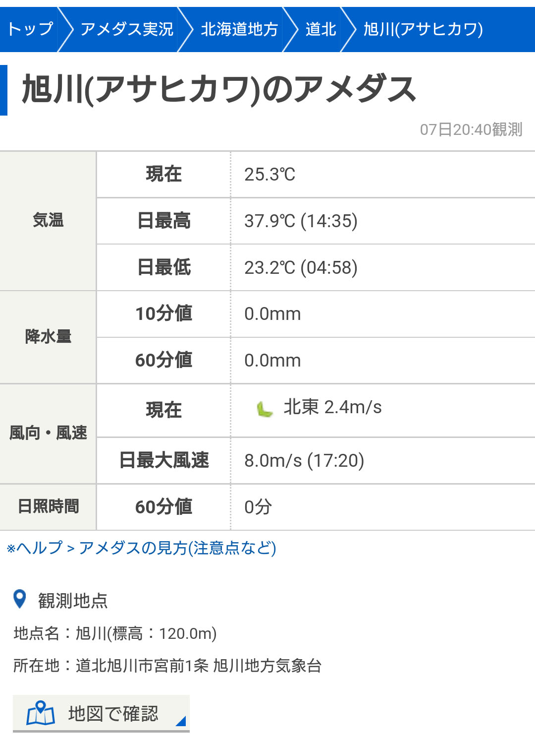 そして、旭川市宮前1条旭川地方気象台(街中)のアメダスでの最高記録は8月7日の37.9度でした。