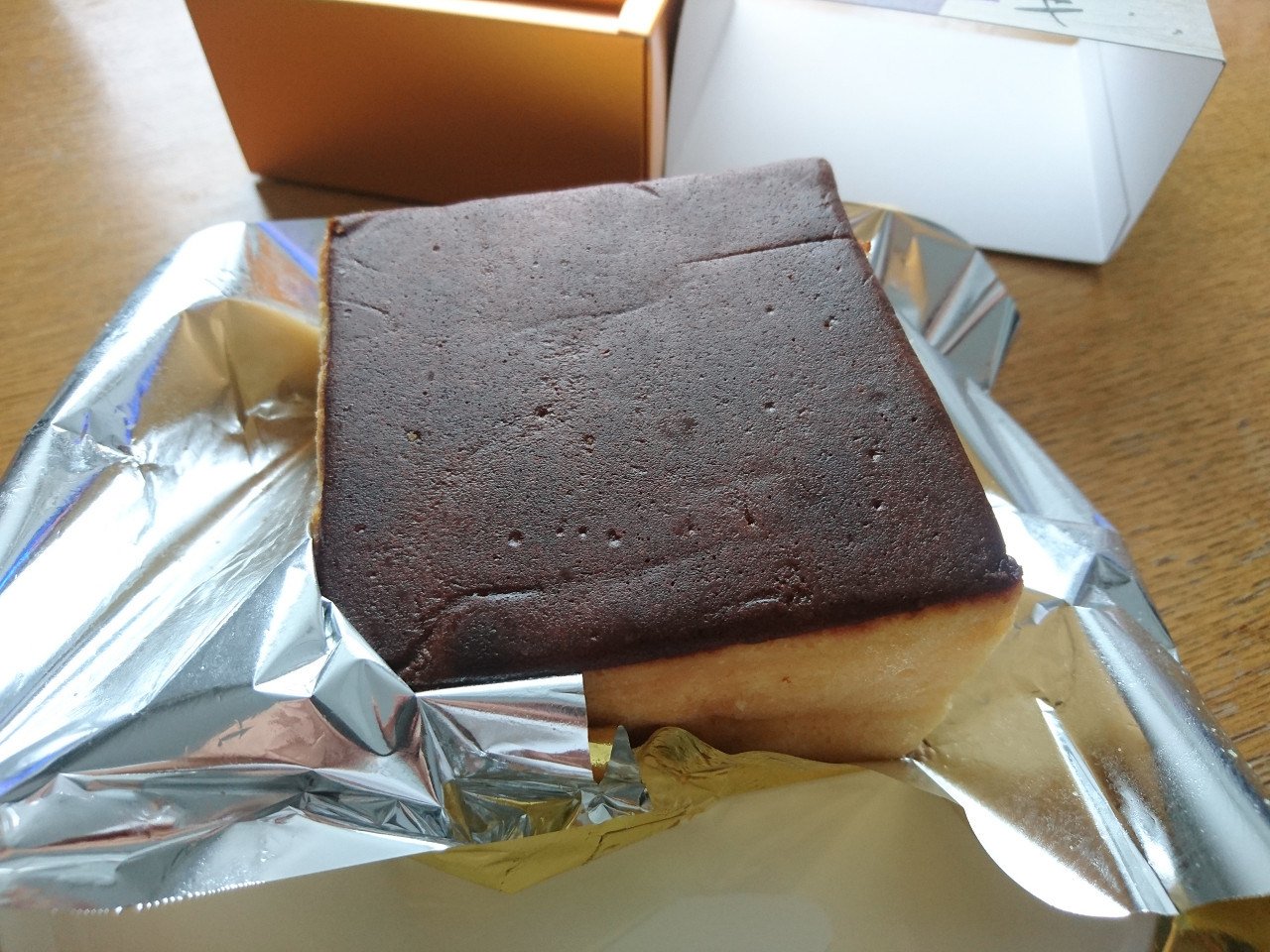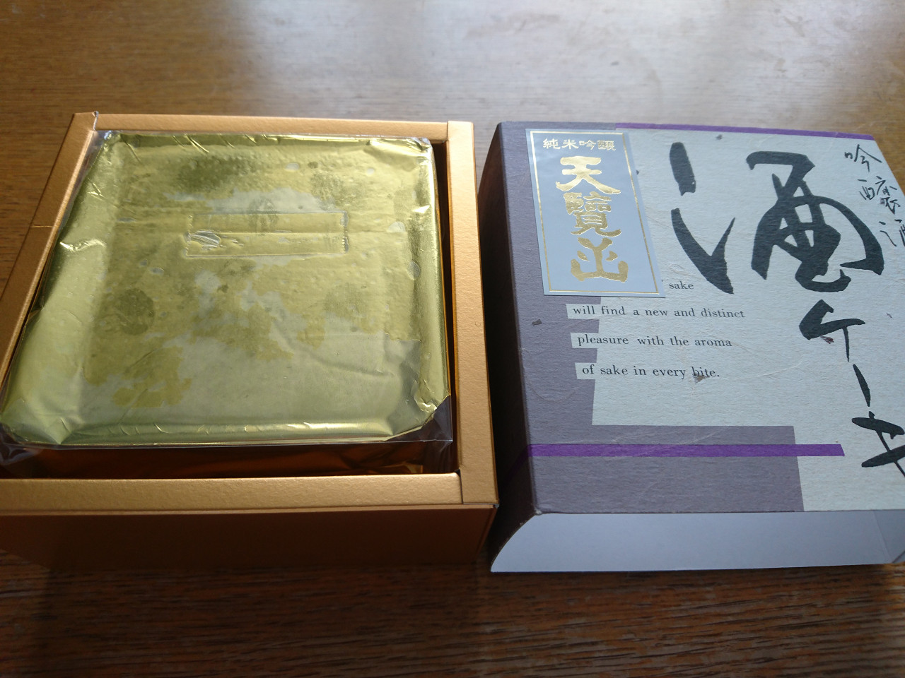 酒ケーキの包みを開けると、日本酒のいい香りがほんのりと漂ってきます。