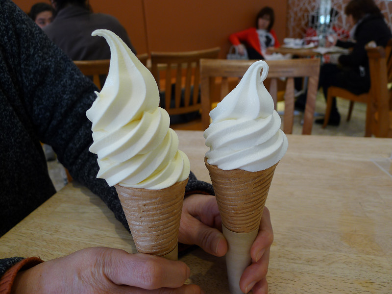 ソフトクリームはミルク、フロマージュ、ミックスの3種類あって、ミルクとフロマージュを注文しました。