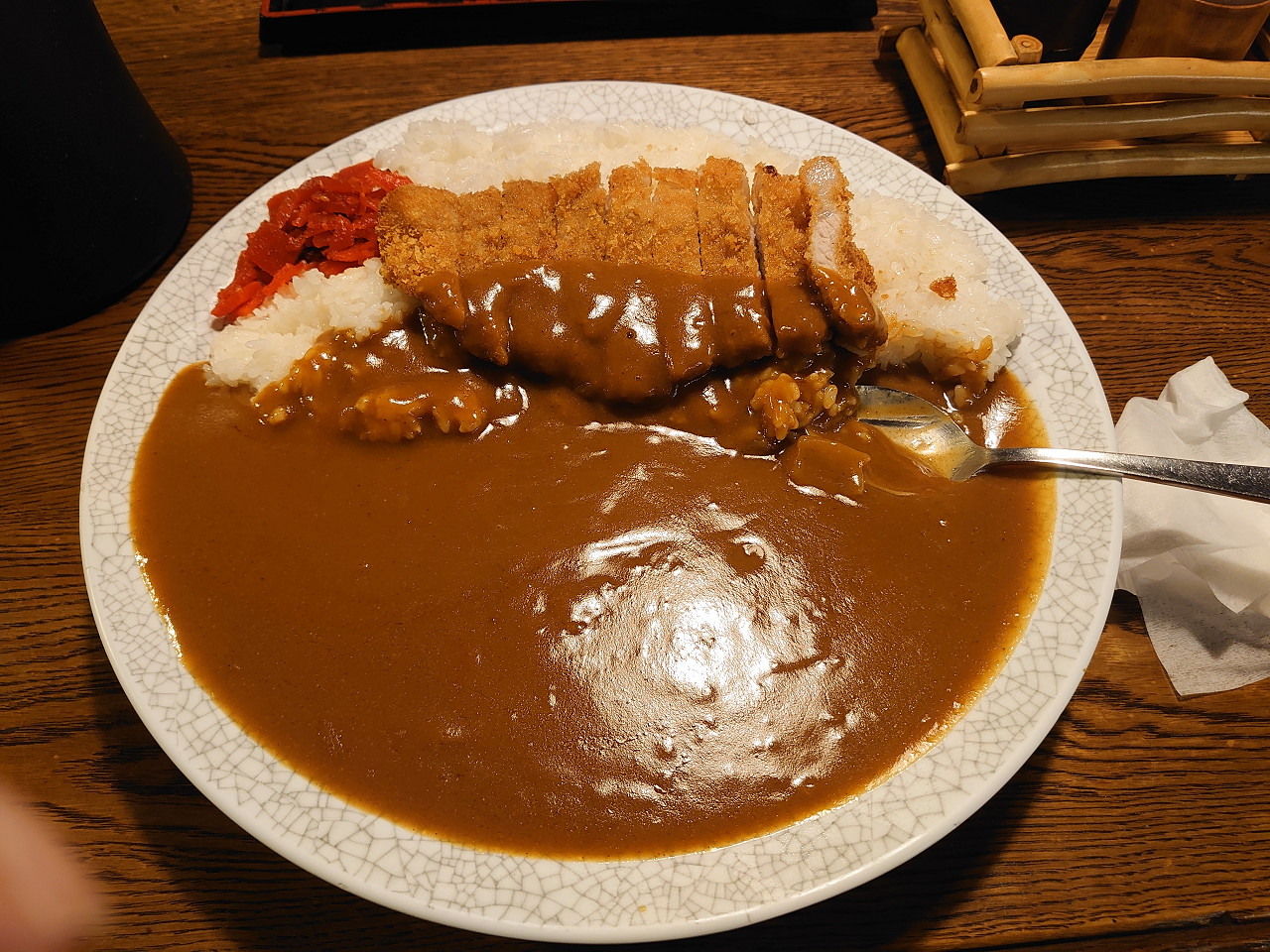 檍に行くこと3度目にして、カツカレーを食べました。