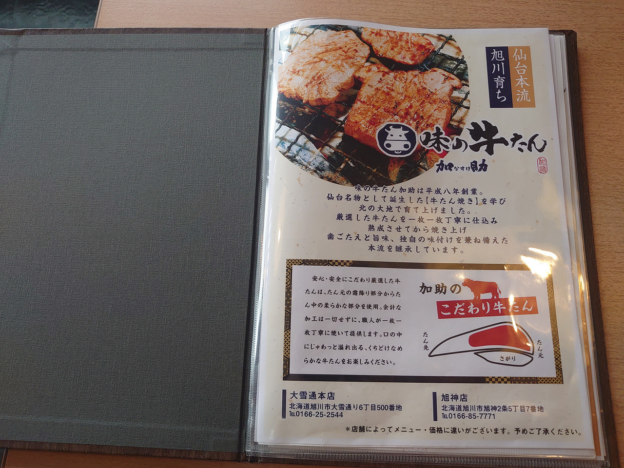 現在、旭川でたん専門店は、この加助とイオン駅前店の福助の2店舗でしょうか。