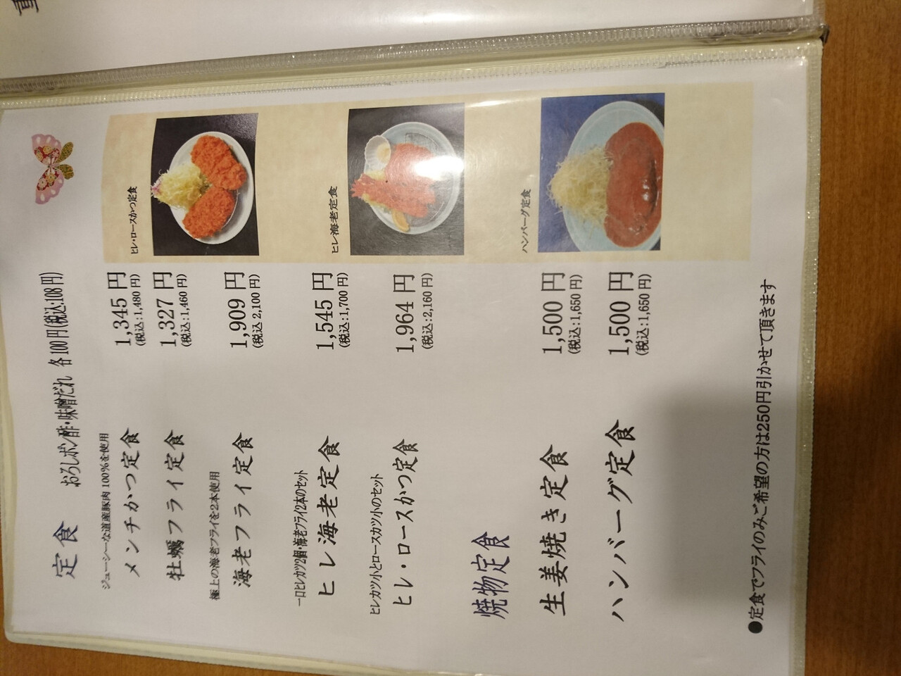 連れは「ヒレカツ定食(170g)1,800円」を注文しました。