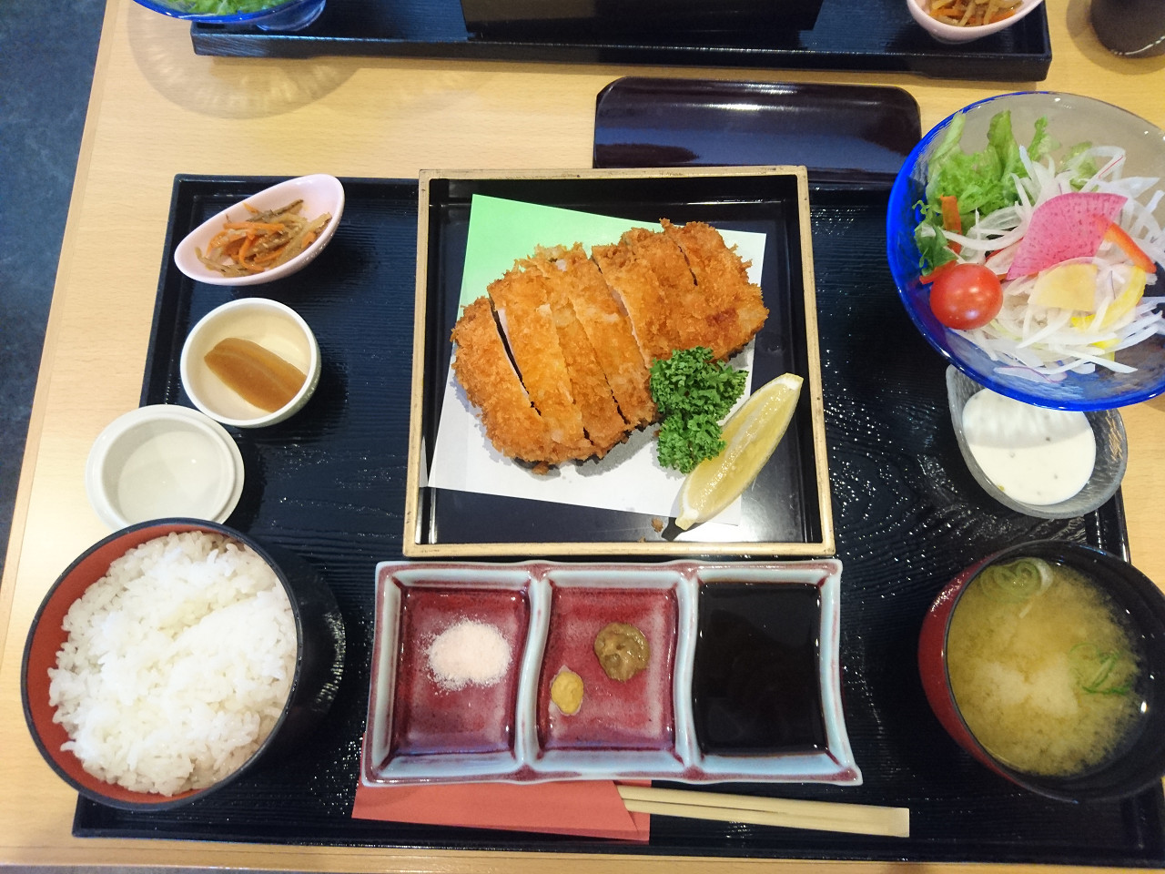 連れは一度食べたことがあるので三元豚の特選ロースかつ(240g)定食を注文しました。