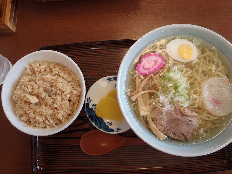 「和風ドライブイン しらかば茶屋」で「とりめし」と「塩ラーメン」のセットを食べました。