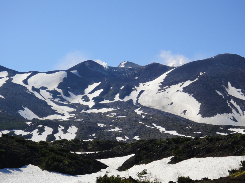 十勝岳2077m(11:27)昼食(11:43)[5:02]