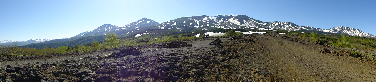 十勝岳連峰は、まだまだ残雪が多く雪渓歩きがたくさんあります。