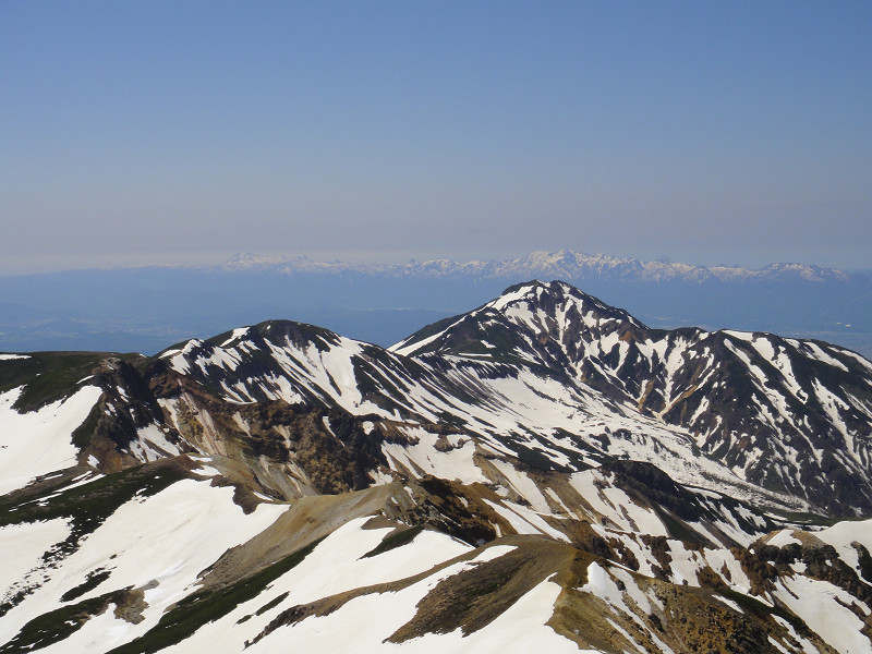 頂上付近雪渓上から見たところ。
