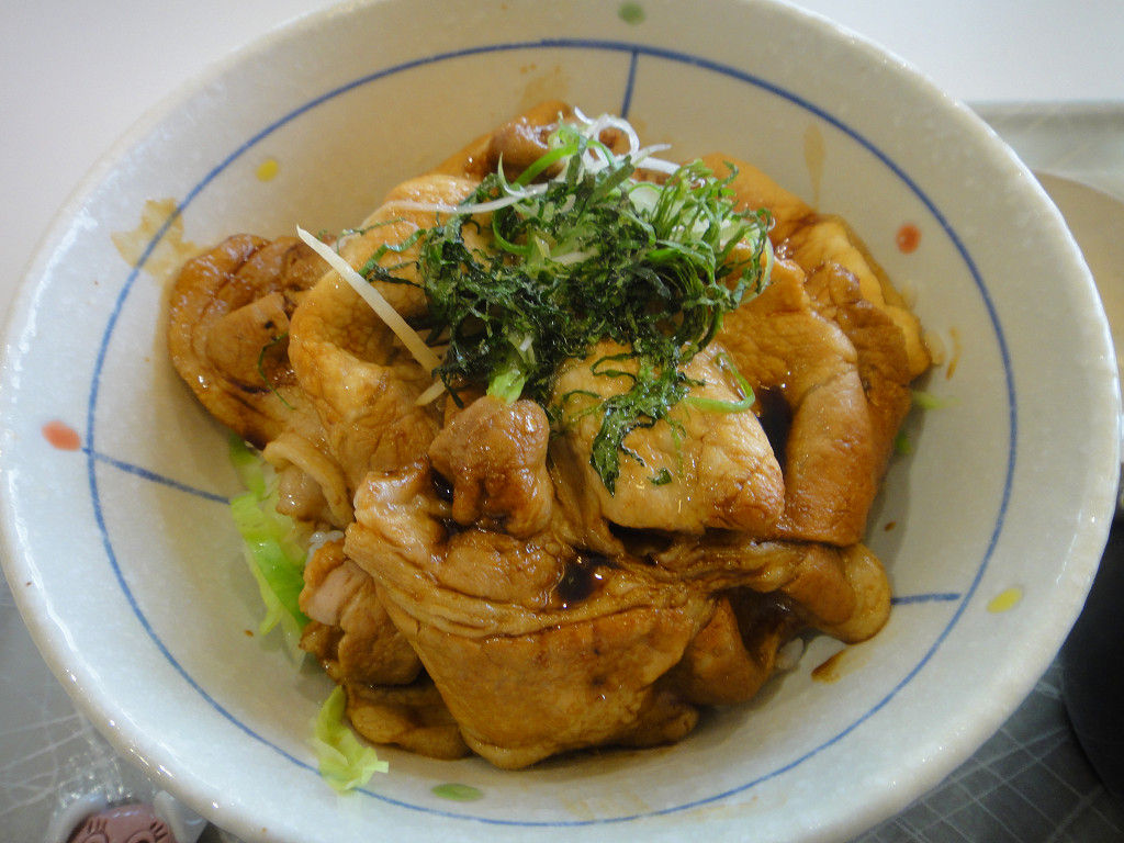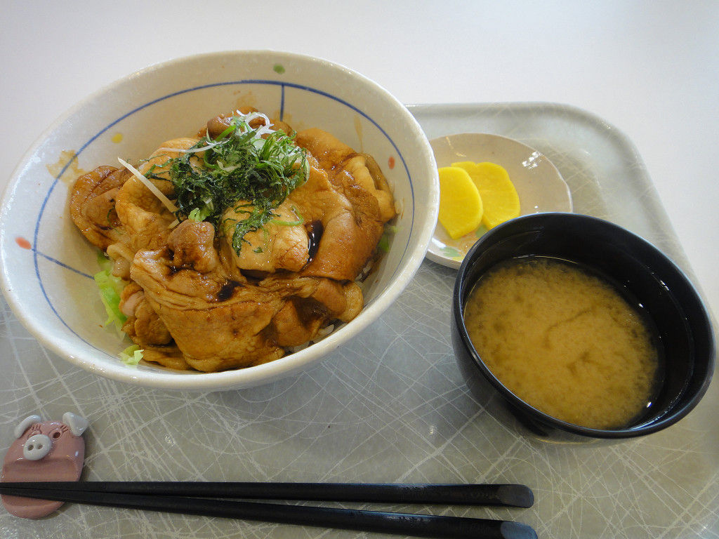 薄切りの肉に甘辛いタレが絡んでいて普通に美味しいのですが、あくまでも一般的な食堂の豚丼で、「柔らかい肉質ときめ細かい油が特徴」かどうかまでは良く分かりませんでした。