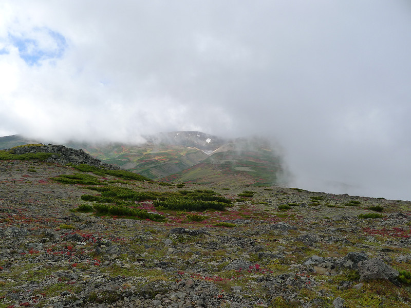 ちょっとだけ雲が切れ、黒岳山頂が見えました