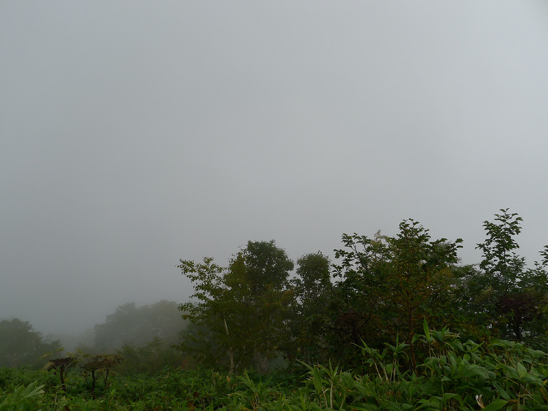 山頂には30分ほど滞在したのですが、雲が切れることもほとんどなく眺望は望めませんでしたが、風もなく寒さは感じませんでした。