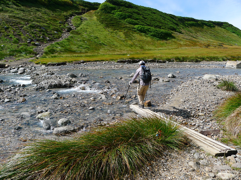 しかし、途中でハイマツの根に足を引っかけて転んでしまい、膝をすりむいてしまいました。